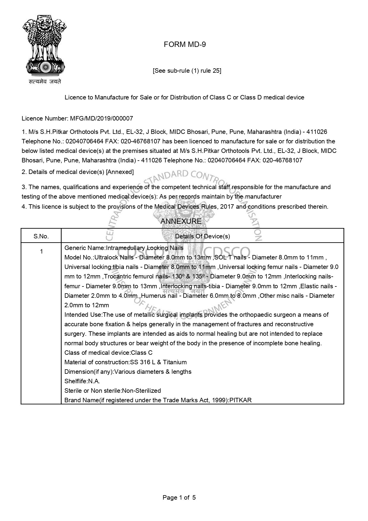 SHPOPL has the following regulatory approvals from various authorities